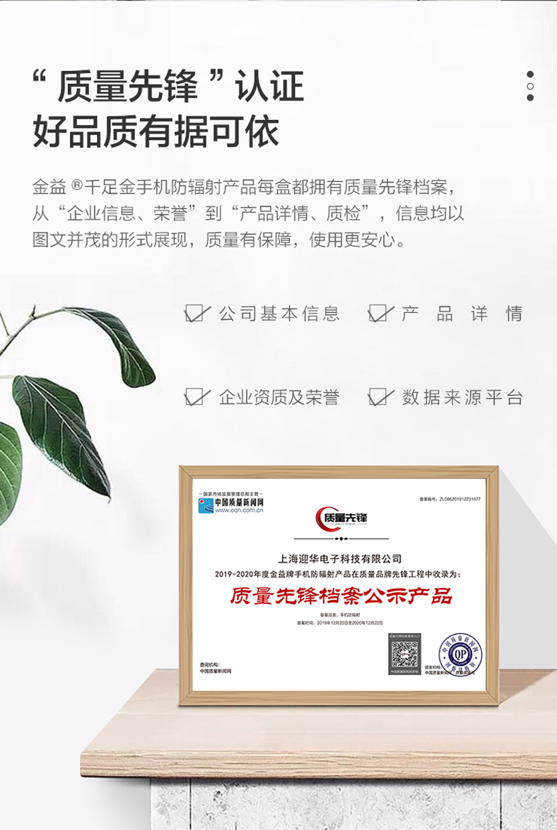 26、2019年12月【金益】被国家市场监督管理总局、中国质量新闻网在质量品牌先锋工程中收录为:质量先锋档案公示产品(备案编号:ZL086201912231677)。