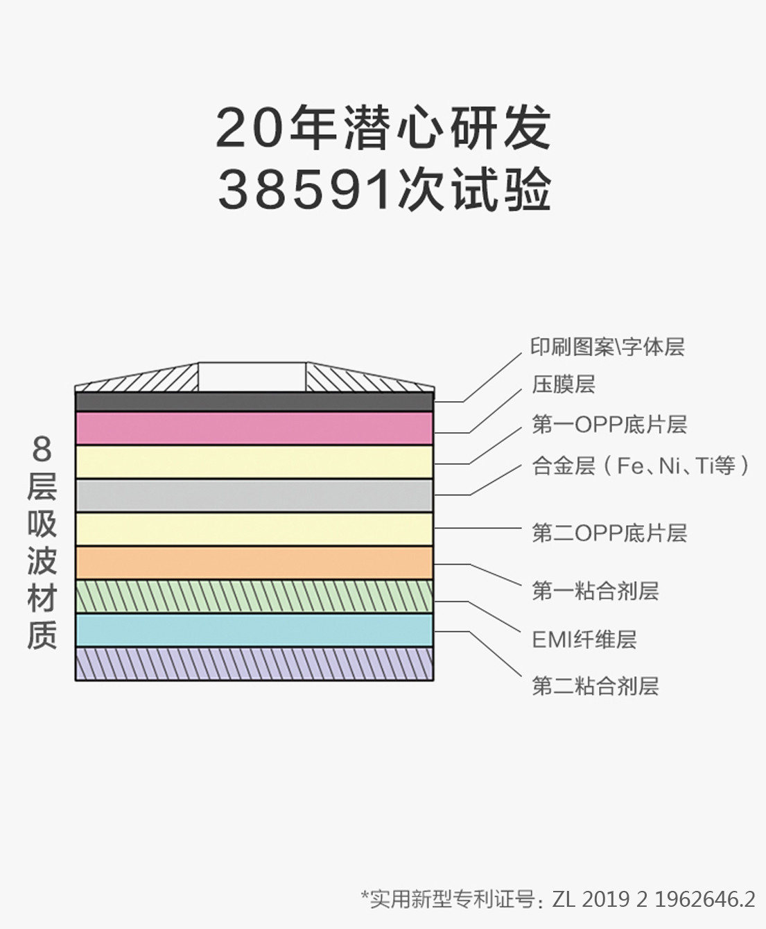 该产品是由15种贵金属(金、银、铜、钾、钙、镁、铝、锌、锡、稀土等珍贵元素)按一定比例制成8层吸波材料,再把8种材质压制为一体,制成后用在手机的听筒和话筒处的一种新型专利产品。我们根据电磁波在介质中从低磁导向向高磁导向传播的规律,在手机电磁波还没有进入人脑组织之前就引导电磁波向产品处汇集,此时的产品就像海绵吸水一样大量吸收电磁波,然后通过共振、折射、耦合作用把对人体有害的电磁波,在人体之外转换成热能,并瞬间散发至空中,从而消除手机辐射对人体大脑和眼睛等器官的伤害。