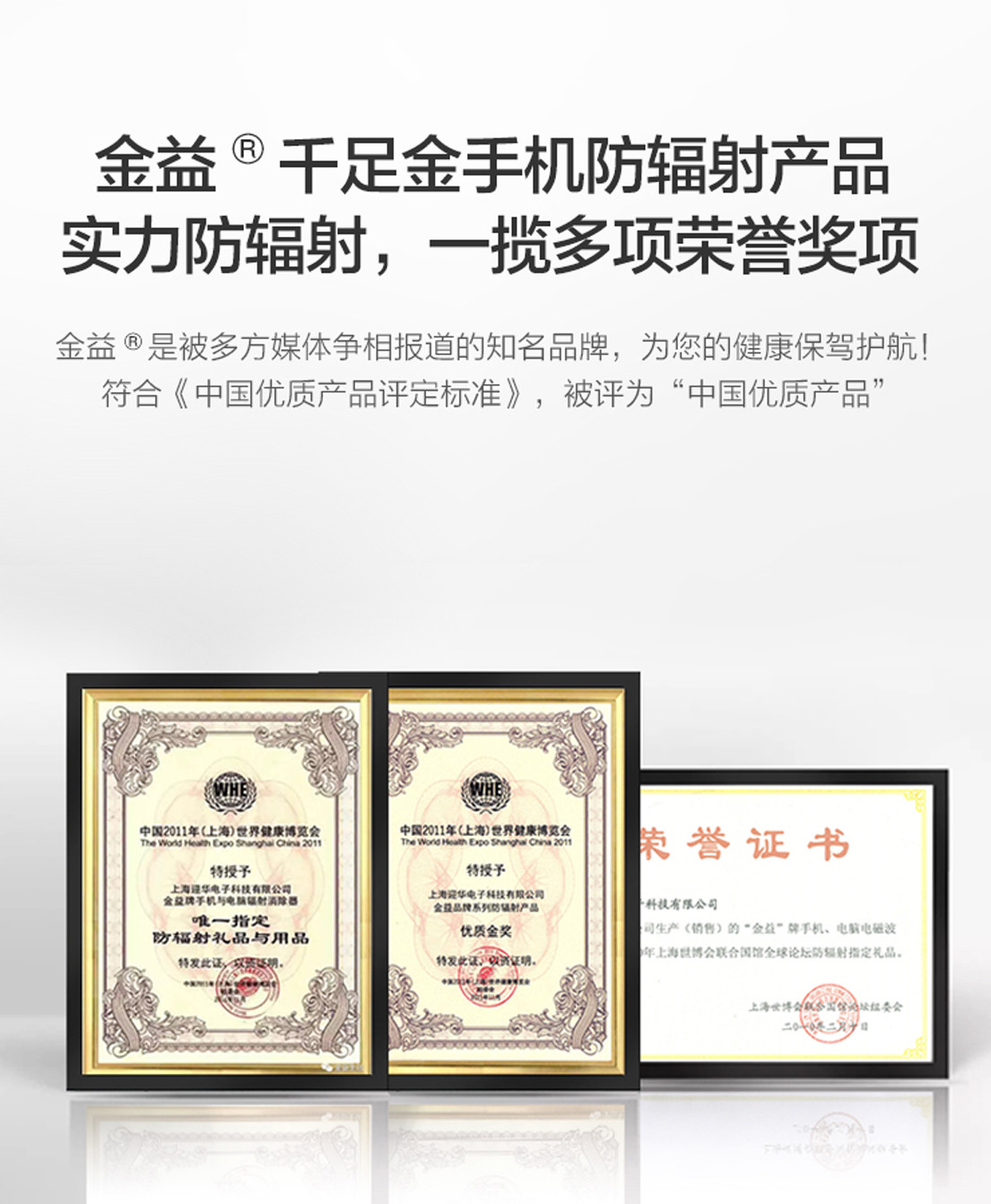 金益牌千足金手机防辐射产品所获荣誉