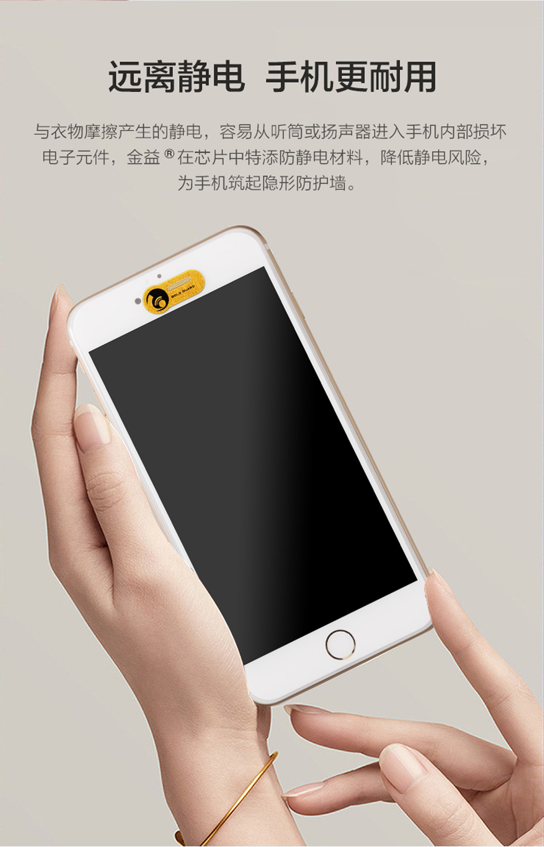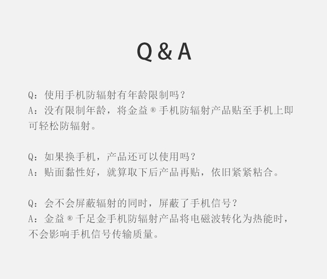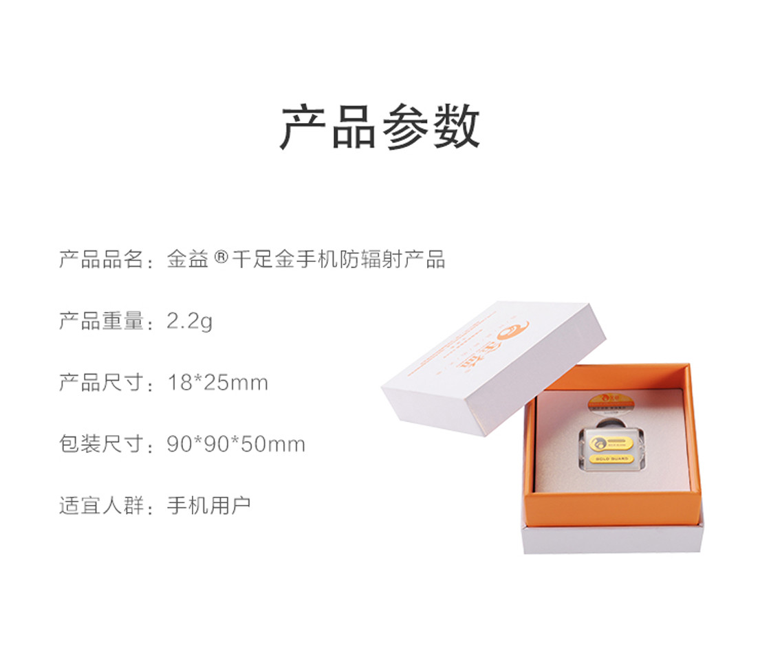 金益牌千足金手机防辐射产品,国家专利(专利号:ZL 2019 2 1962646.2),由中国众多科研机构参与研发,一直坚持采用高品质的千足金以及多种贵金属材质和军事科学隐形技术,经过20年的持续努力,38591次试验,成功地攻克了在电子信息时代困扰我们的手机天线、听筒、话筒辐射和手机屛幕蓝光辐射这一技术难题。特別是千足金材质搭配在手机上的防辐射产品,纯金碾展到0.01毫米的金属工艺属公司拥有。
